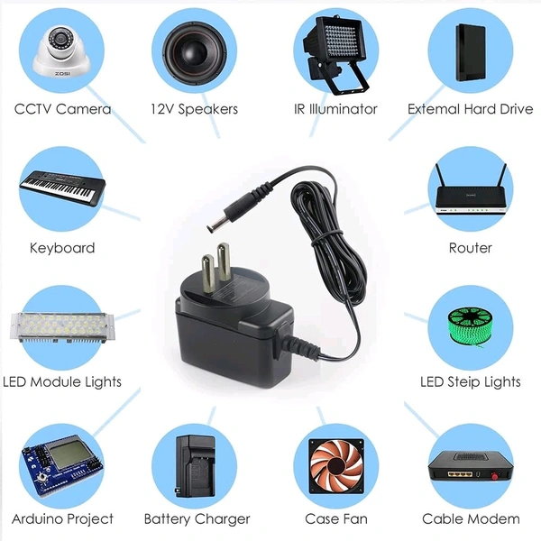 12V 2A DC Power Supply Adapter, AC 100-240V To DC 12 Volt Transformer. SMPS For LCD Monitor, TV, LED Strip, CCTV Camera, Setup Box, Broadband, Routers, NVR, (Max 24W) (1.5 Mtr Cable) (12V 2Amp) (1 Yr
